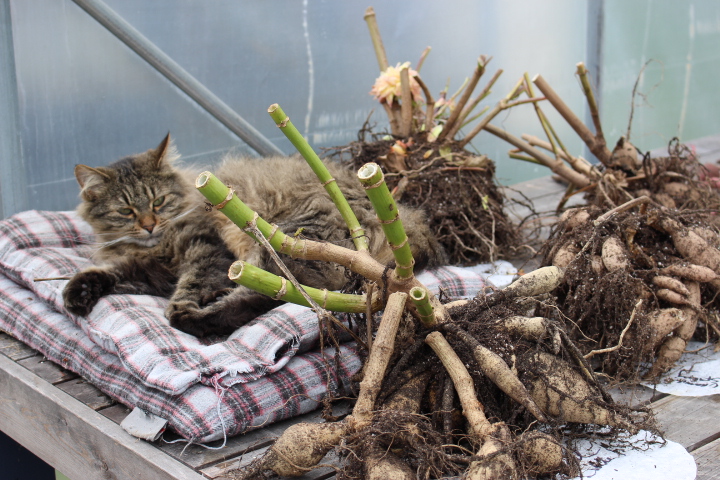 As you are cutting down your foliage to put the tubers into storage, you might want to take some of the stems and try growing your own rooted dahlia cuttings.