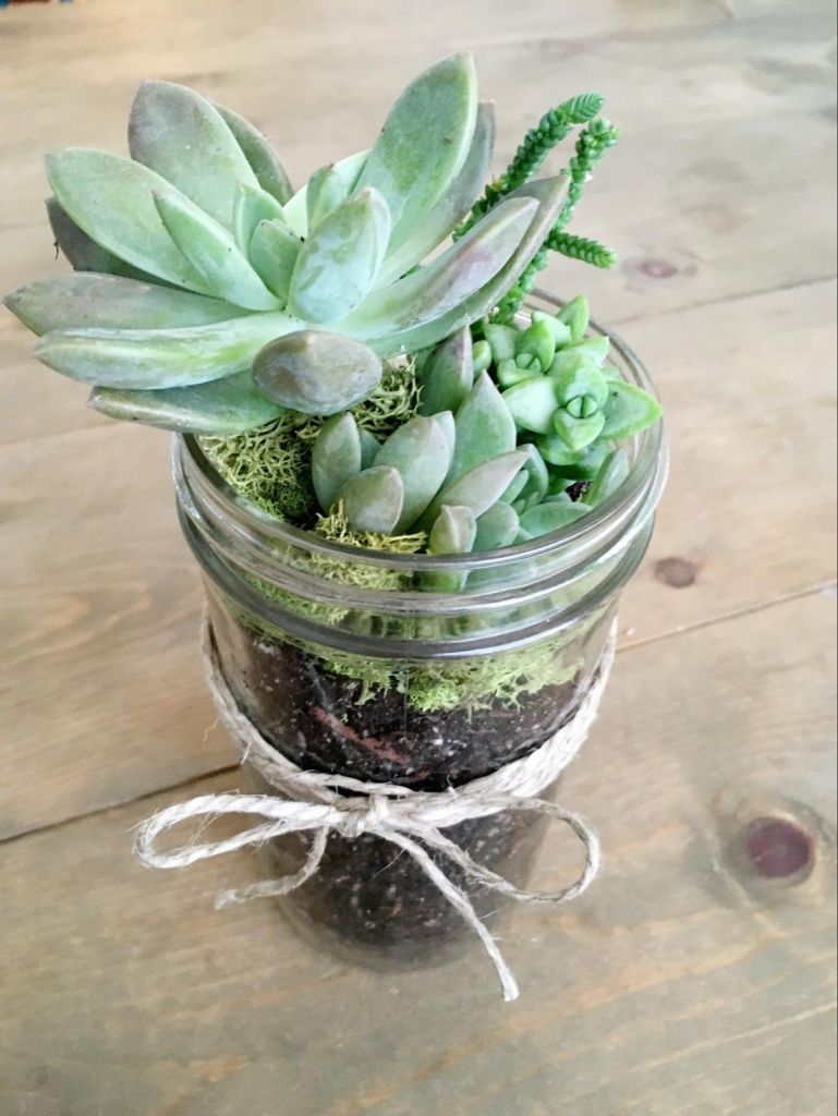 I saw the cutest idea for a succulents in a mason jar to give as gifts. Maybe a housewarming gift, Christmas, birthday, or just-because friendship gift. Super simple to make, too. I think the mason jars are rustic and cute, or use cute little bowls from the dollar store instead for the friend with a more boho style.