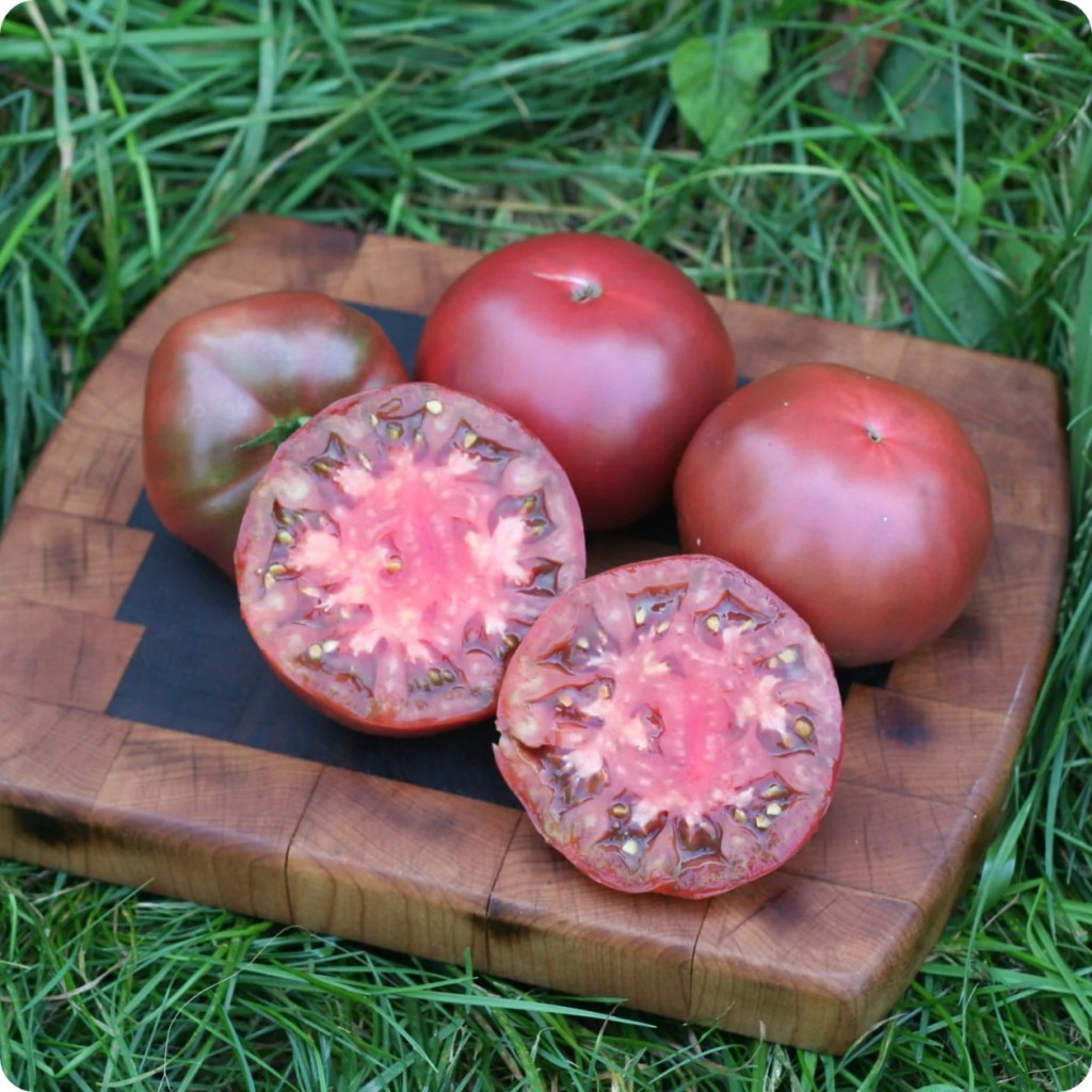 My comments – If you have not yet tried black tomatoes, this is the best one to start with. The flavour is deep, rich, superb. I always say that the black tomatoes are the dark roast of the tomato world. Real rich tomato flavour.