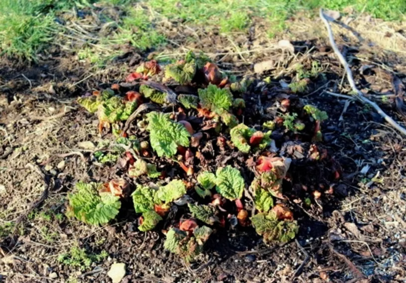 If you want earlier rhubarb, when you see the pink nubs beginning to poke through the ground, cover the crown with a flower pot, garbage can, or other dark container. If it has holes in it, fill them in so that no light gets through to the rhubarb. Even the smallest bit of light will foil your attempts at sweeter, tender stalks.