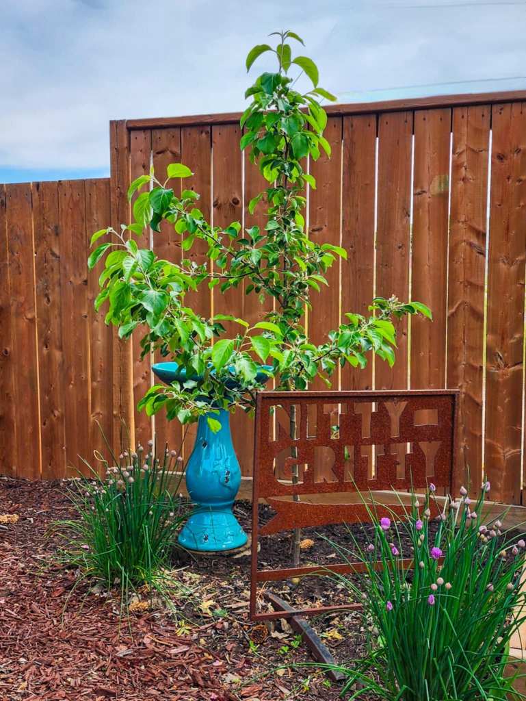 - Deep water your trees every 2nd week, if you can. I do it with my young trees, like the apple above, especially while they are making fruits, but do not water established trees.