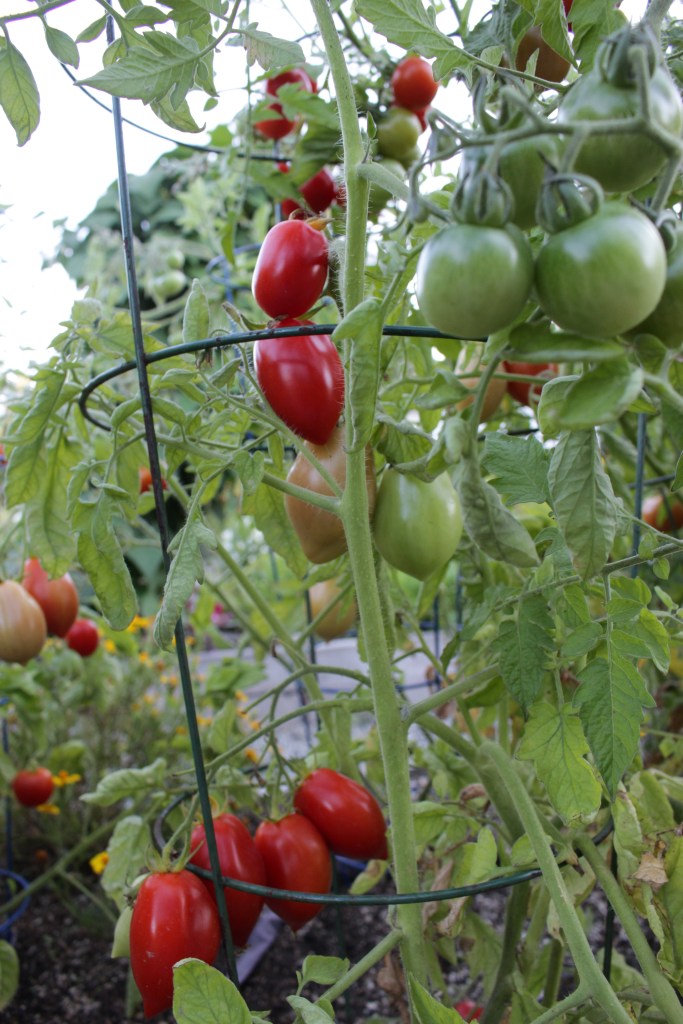 The soil here is clay and so rich in nitrogen that I had to really prune my tomatoes last year, to help get the sun to the tomatoes for them to ripen in time. Take off extra stems, extra greenery, anything touching the soil, anything below the first cluster of tomatoes…