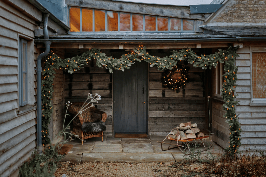 I like to keep my front entry special and festive, yet pretty simple. There will be a garland, like you see above, there will be a porch sign, a wreath, a festive mat that will be layered on top of a larger colourful mat. It is simple, but pretty and festive.