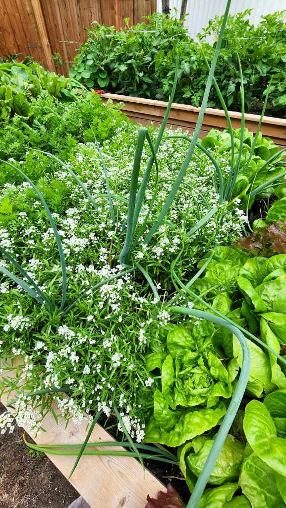 I get onion maggots every year so have only been able to harvest about a third of my onions. The ones that were growing in the sweet alyssum were not affected by the maggots. If pests are confused by strong scents, they are fine… but often times, the flowers that make this happen come later than the maggot flies : (